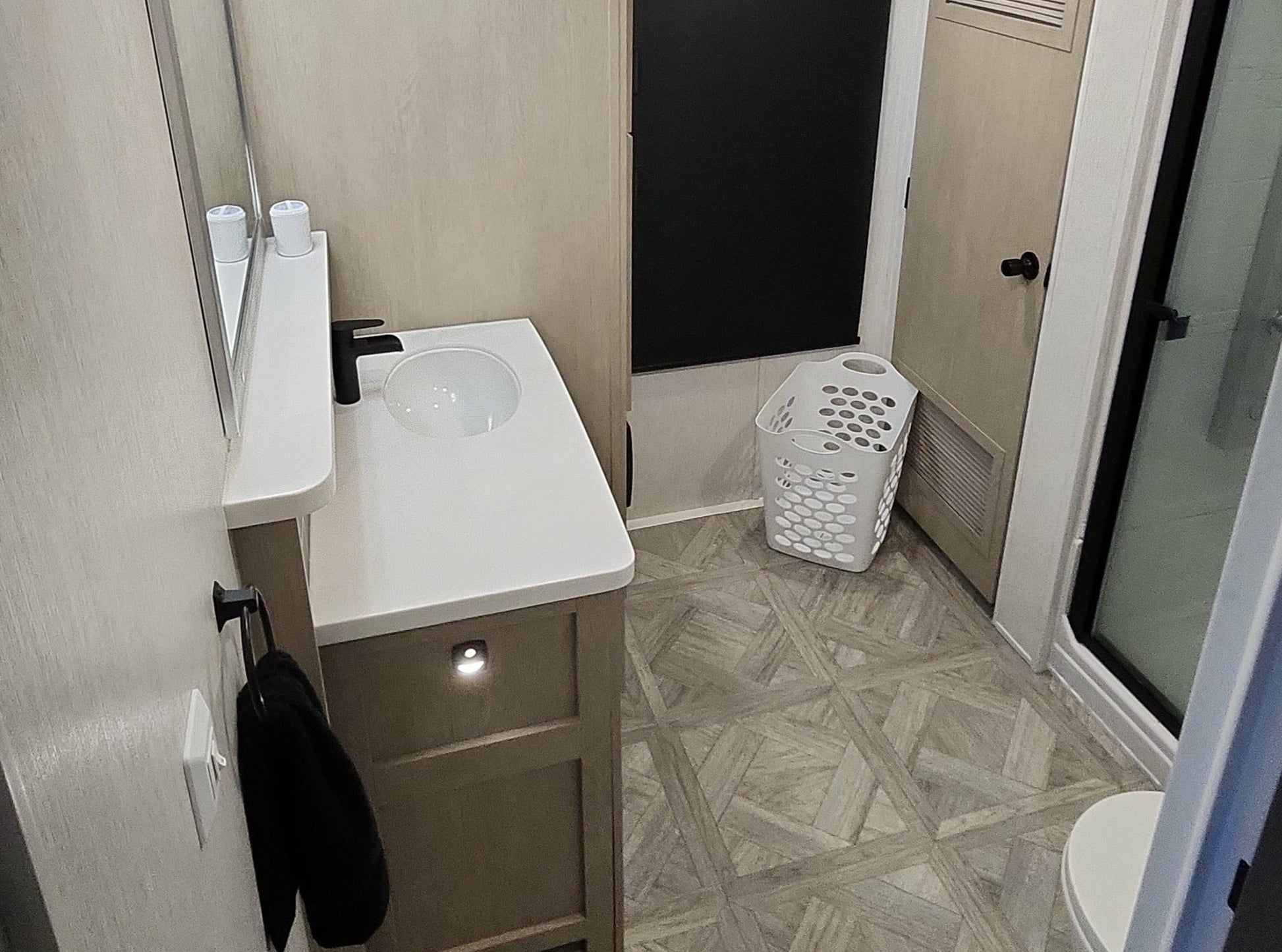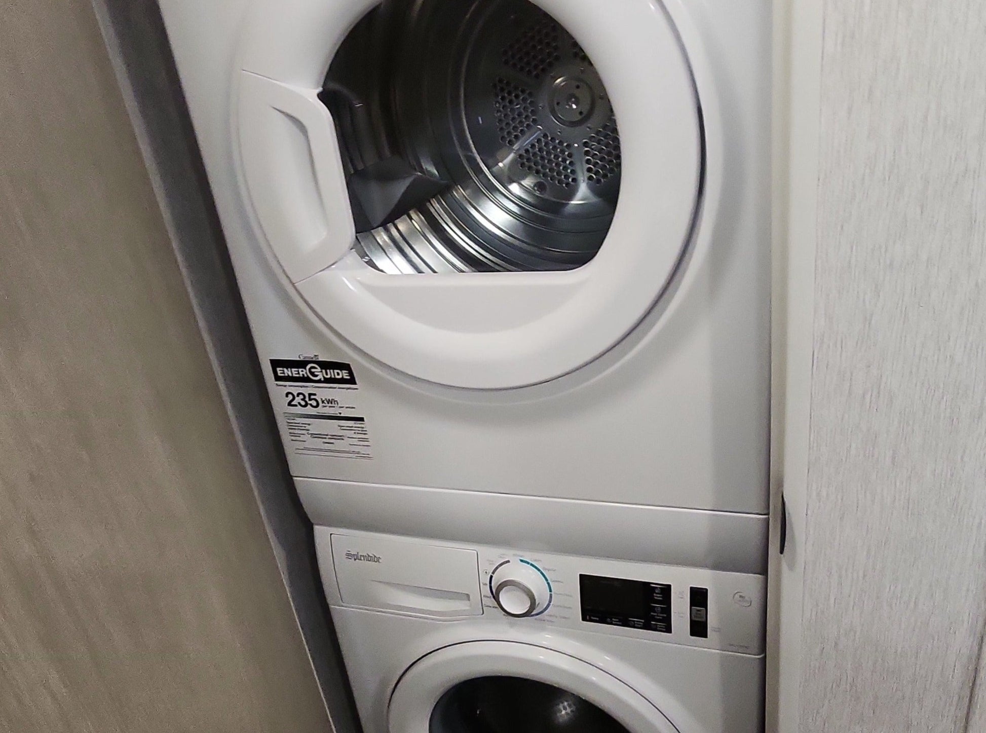- Bathroom equipped with toilet, shower, sink, washer (full hookup site required) and dryer