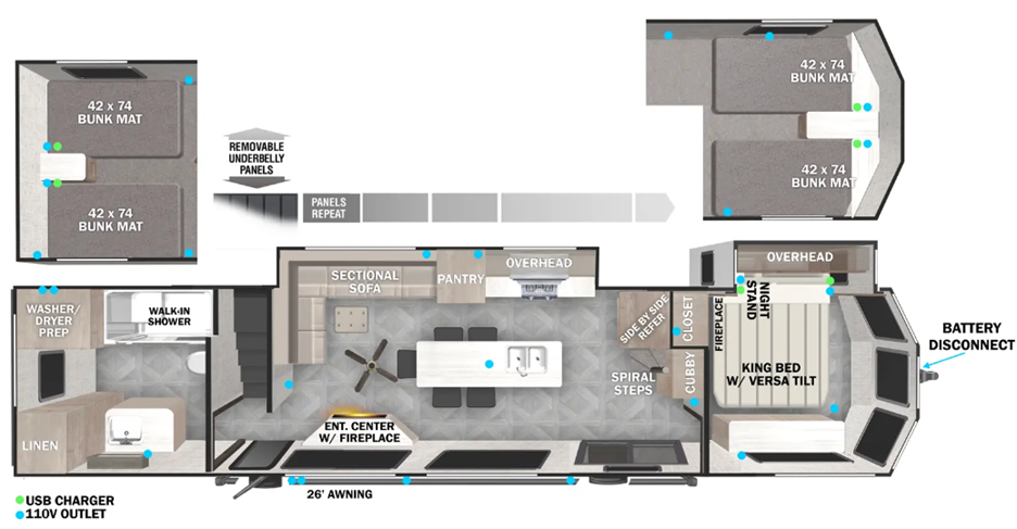 - Spacious Living Areas: Enjoy ample space for relaxation, entertainment, and dining, providing a home-like atmosphere on the road.