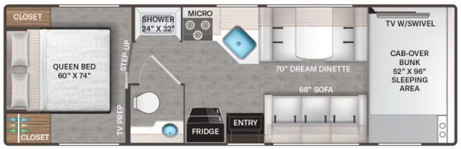 - Automatic Climate Control: Stay comfortable with automatic 13,500 BTU air conditioning and a 30,000 BTU heater.